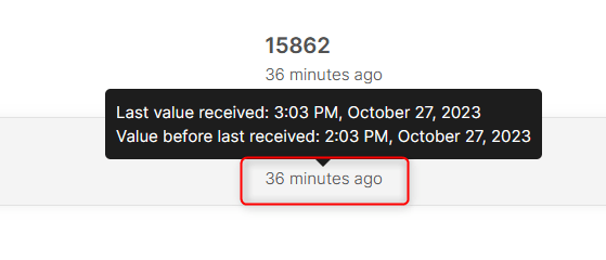 - When you hover over the relative date, you see the absolute date as well as the date of the previous value received. This makes it easy to check how often data is received.