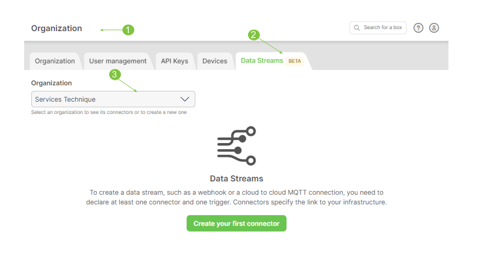 To retrieve your property values or be alerted to an alarm directly in your tools, you can now create data streams from the console. A data stream is a connection between Wattsense servers and your servers, which can be either a webhook or a cloud-to-cloud MQTT connection.