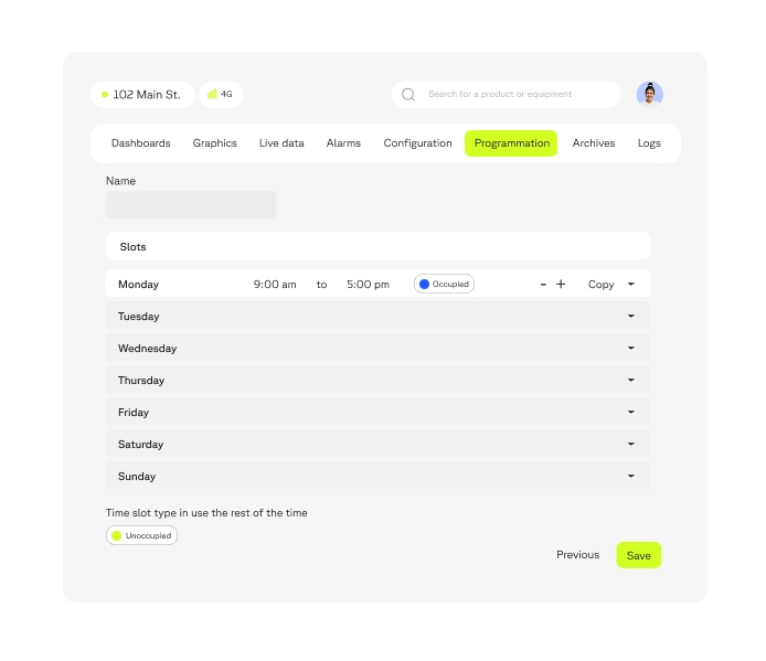 Save energy by adjusting specific room temperatures in just a few clicks thanks to schedule programming,