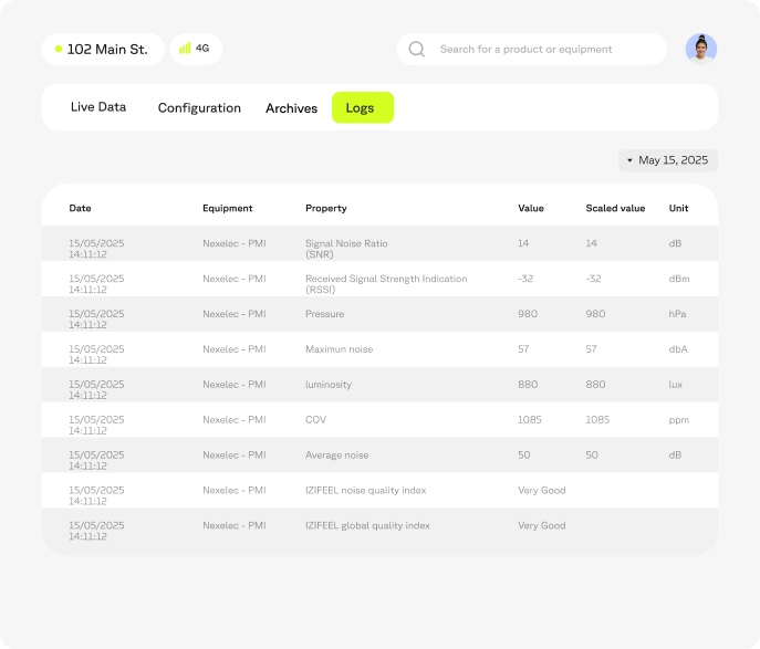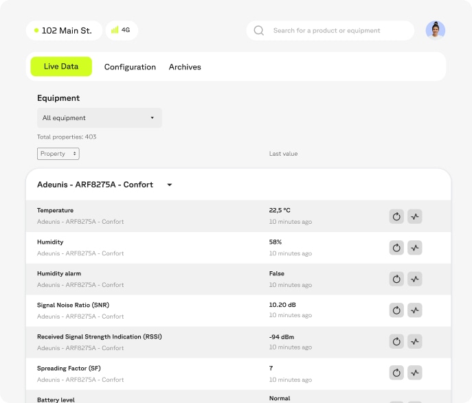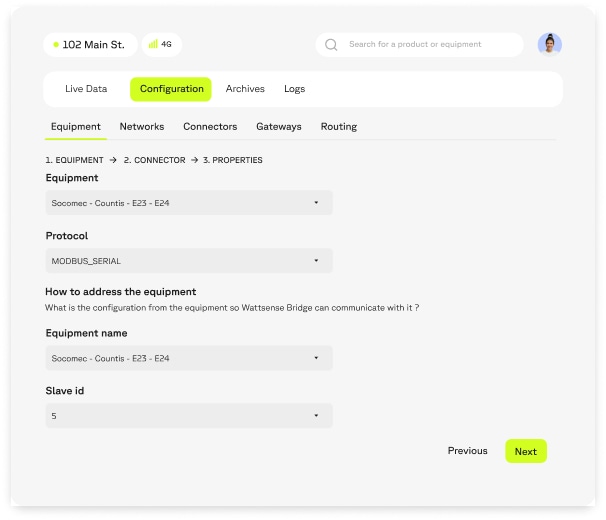 On the Bridge console, users can configure their equipment remotely and access real-time data and logs. The data is not stored on the Wattsense server.