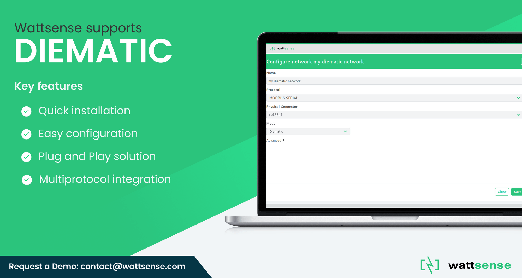 As a way to help companies connect easily to their equipment and overcome the mentioned challenges, we integrated the Diematic protocol into the Wattsense service.