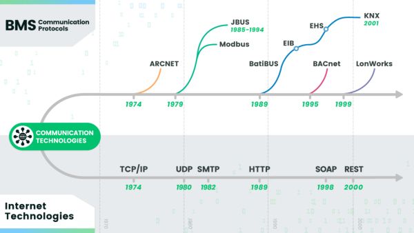 Il semble que vers les années 60 et 70, le secteur des technologies de l’information pour la gestion technique de bâtiments (GTB) a créé une ramification spécifique sur la branche maîtresse de l’informatique destinée aux particuliers et aux entreprises. Lorsque Internet est apparu, l’écart s’est creusé.