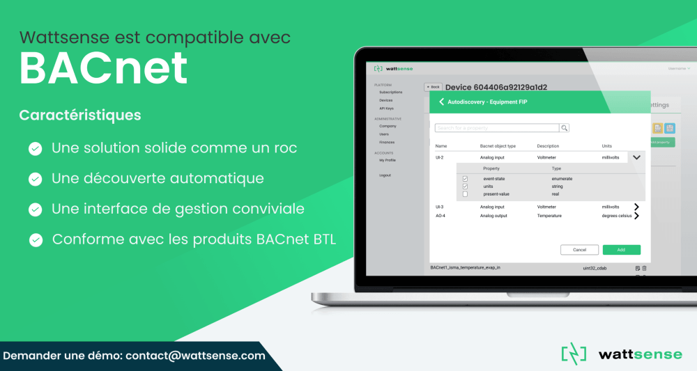 Chez Wattsense, nous sommes fiers de nous efforcer de fournir à nos utilisateurs ce dont ils ont besoin pour créer des applications révolutionnaires. Notre équipe d'ingénierie embarquée a donc décidé de s'attaquer à cet obstacle, sous la direction de Louis Rubet, responsable du service embarqué, et de Raul Fuentes, ingénieur-docteur en informatique. Ces derniers sont très heureux d'annoncer l'intégration de BACnet dans notre Box, créant ainsi un accès rapide et facile pour tous les développeurs informatiques via notre API RESTful (Interface de Programmation Applicative).
